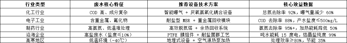 三、場景適配:分行業廢水處理設備選型指南